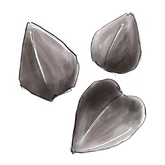 | 原料 | 脱皮状態 | 殻 | 甘皮 | 外層〜中層 | 芯 | 特徴 | |